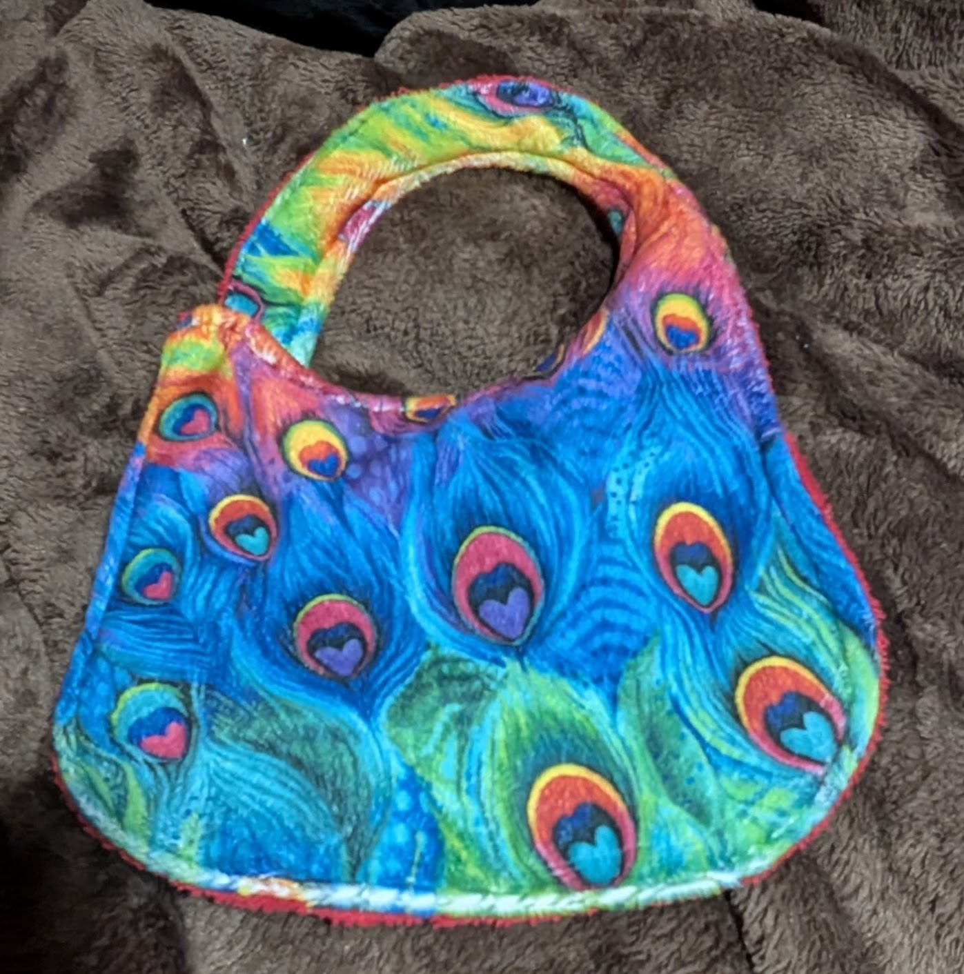 DROOL- For tiny babys drool bib which is a circle and small for a little older babys a Larger bib that can either have an applique or soft shape as a heart and the other side is the Minky -Minkie fabric that is so soft.